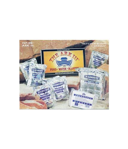 110The Ark III is a personal-sized survival package that supports one person for up to three days. Each ARK III includes a "space blanket", plus a three-day supply of food and water. Easily stored in a classroom, locker, desk, or car, the compact ARK III can be used anywhere.