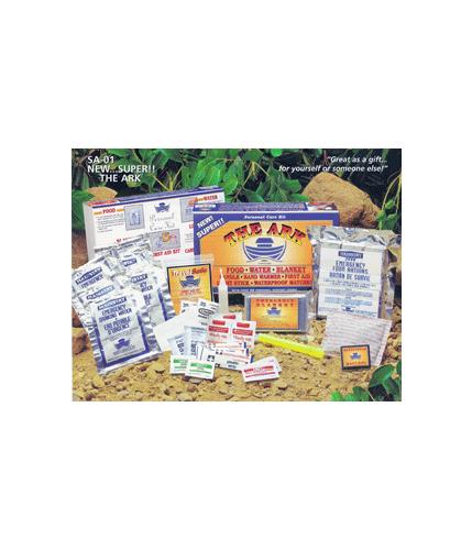 food and water with a five-year shelf life, a first aid kit, hand warmer,