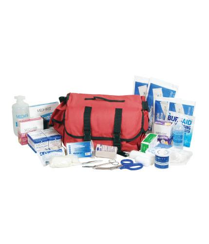 Assorted first aid items in a portable nylon bag. Perfect for first responders facing minor first aid emergencies.