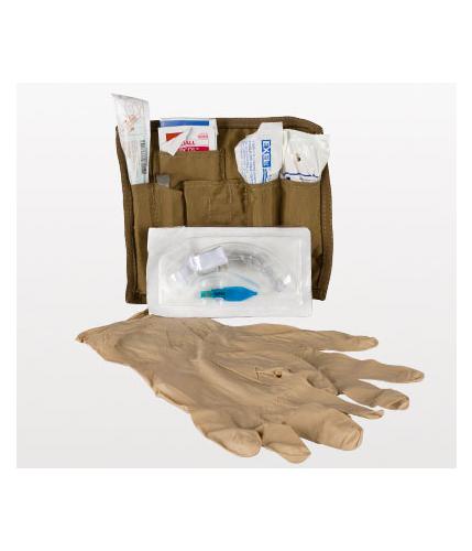 Special Features: Provides all of the components necessary to conduct a surgical cricothyroidotomy correctly. The ideal length and size tracheal tube with securing device included. Components configured in the sequence of use and ideal for low-light, battlefield environments. Lightweight, ruggedized and minimal in weight & cube. Berry Amendment compliant, 500 denier Pouch designed to provide a clean working surface Contents: 1 x Bag (Pouch- Tactical CricKit®), 2 x Bear Claw™ Nitrile Trauma Gloves (1 pr.), 1 x Alcohol packet, 1 x Povidone Iodine packet, 1 x Gauze Pad (4 in. x 4 in.), 1 x Protected #10 Scalpel, 1 x NAR Tracheal Hook, 1 x 10cc Syringe, 1 x Cric. Tube with Obturator (Flexible, Cuffed, 6mm), 1 x Tube Securing Strap, 1 x Plastic Vacuum Bag Dimensions: Kit Unrolled - H 6.5 in. x W 7.5 in. x D 1.25 in. Packaged - H 6.5 in. x W 2.5 in. x D 1.25 in. Weight: 3.7 oz