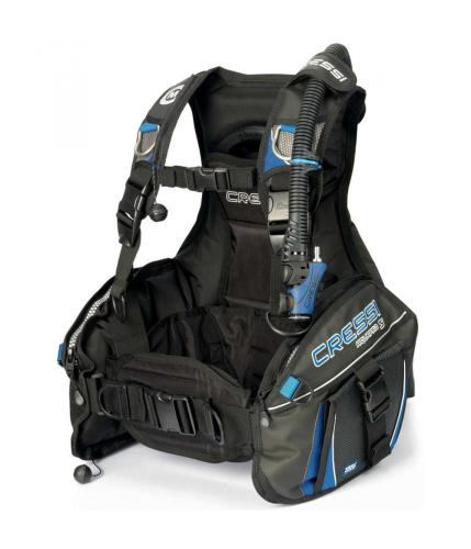 Technical characteristics Material: 420 denier nylon and self-draining mesh fabric. 2 external wraparound weight pockets. 2 large accessory pockets with zip fastening. Rigid, fully padded back support panel. Ventral strap that is separate from the bag. Chest harnessing. 3 relief and overpressure valves (the rear valve has the control at the front). 2 50 mm stainless steel D rings on the shoulder straps. 2 50 mm engineering plastic D rings on the lower edge of the buoyancy jacket. 2 snap hook rings. Sizes: XXS, XS, S, M, L, XL Buoyancy in Newtons: 60 (XXS), 75 (XS), 90 (S), 105 (M), 150 (L), 160 (XL) Buoyancy in kg: 6.1 (XXS), 7.7 (XS), 9.2 (S), 10.7 (M), 15.3 (L), 16.3 (XL) Weight in kg: 2.50 (XXS), 2.550 (XS), 2.650 (S), 2.850 (M), 2.900 (L), 3.000 (XL)