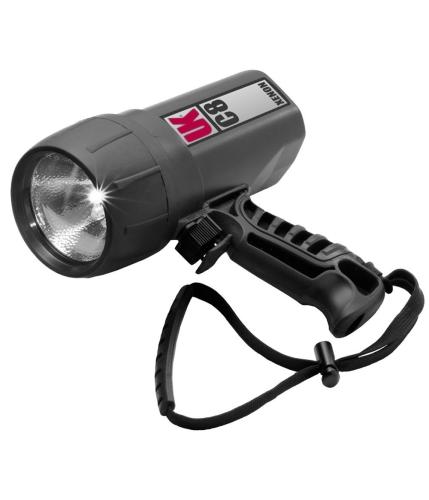 Basic 13.2 watt model operates on 8 disposable alkaline C-cells. Dual lamp system allows switching between two lamps underwater. Nonbreakable locking switch prevents accidental actuation. Integral contoured pistol style grip. Protective rubber bezel cover for drop and scratch protection. Tough, non-corroding ABS and polycarbonate plastic construction. Rubber sleeve lanyard included. Rechargeable Upgrade Kit includes 20 watt lamp, high temperature reflector, rechargeable nicad pack and charger. Proudly made in the USA. SPECS: Dimensions (L W H): 6.60 in x 5.60 in x 3.20 in / 16.76 cm x 14.22 cm x 8.13 cm. Lights Subcategory: Waterproof. Battery Type: Alkaline Disposable / Rechargeable. Lamp Type: XENON. Battery Description: 8C Alkaline / LR14. Burn Time (Alkaline): 4-5 hrs. Light Output (Alkaline): 338 lm. Burn Time (Rechargeable): 2 hrs. Light Output (Rechargeable): 638 lm (high) / 355 lm (low). Weight: 35.00 oz / 992.23 g. Beam Distance: 531.50 ft / 162.00 m. Enclosure Protection: IP68. Depth Rating: 500.00 ft / 152.40 m. Dive Lights: Primary Dive.