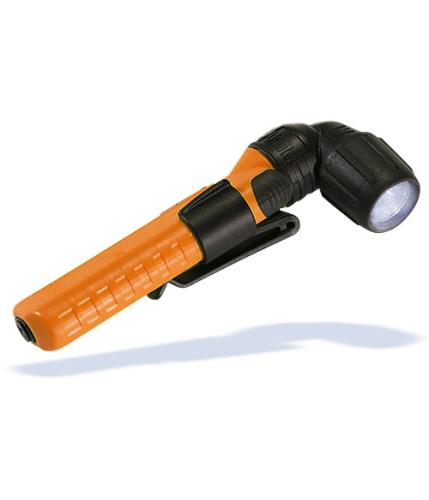 The 90? lamp head rotates in any direction to focus light exactly where you need it. Simply lay the 4AA Right Angle Light down and twist the light head to point at your work. A sturdy unbreakable nylon clip is included so that the 4AA Right Angle Light can be clipped to a coat pocket, safety strap, or belt. Once again twist the head to light up your work. For straight on illumination the right angle section can be removed. For easy access a stainless split ring and snap are included for attachment to clothing loops and button holes. The high impact ABS and polycarbonate case is o-ring sealed and waterproof use in the rain and submerged illumination.A necessity for confined space workers, utilities, municipalities, firefighters, safety inspectors, etc. UL rated for use in hazardous locations.