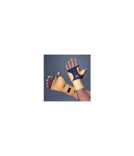 | 706-20 Impacto fingerless nylon lycra glove with grain leather and impact absorbing pad in thumb web area and on the palm overlapping to the edge and top of hand. Detachable grain leather wrist support.