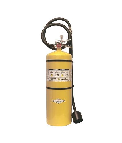 Specifically designed for use on combustible metal fires, this extinguisher features a discharge assembly that keeps the operator at a safe distance while providing accurate application of the agent on the fire. From the heat of the fire, the sodium chloride based agent forms a crust to exclude air from the burning material. Suitable for use on Class D fires such as those involving magnesium, sodium, potassium and sodium-potassium alloys. There is data showing that zirconium, uranium, titanium, and powdered aluminum fires can be controlled and extinguished with this unique extinguisher. Typical Uses: Metal production and machining operations.