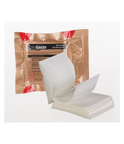 Special Features: The proven hemostatic properties of chitosan enhance the ability of medical gauze to control hemorrhage.. Readily conforms into the wound surfaces with complex geometries to rapidly staunch bleeding and seal the wound site. Z-folded & packaged in 3 in. x 4 yd lengths. Offers antimicrobial properties against 26 bacterial organisms. Non-woven, polyester/rayon blend medical gauze is coated with chitosan to maximize its performance and control severe bleeding. Packaged in a custom North American Rescue vacuum sealed pouch that is compact and rugged with easy-to-open tear notches Dimensions: Package Size: H 5.75 in. x W 5.0 in. x D 0.65 in. Product Size: 3 in. x 4 yards Weight: 0.7 oz Shipping Size: 8 x 8 x 4 box