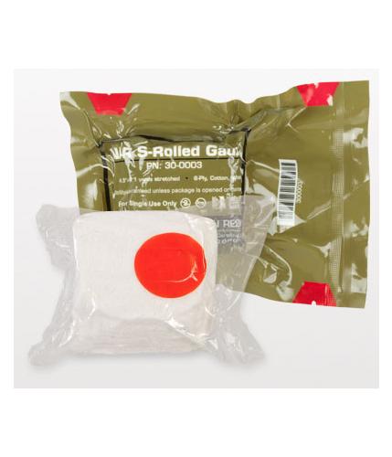 Special Features: 4.5" x 4.1 yd Sterile, 6-ply cotton gauze up to 5 year expiry, Made in the U.S. & Berry Amendment Compliant Unique and convenient packaging configuration and dispenser allows controlled application as a complete unit or in a continuous linear feed for wound packing. Unused portion remains protected from contamination during application. Used as backing gauze for hemostatic agents, in conjunction with a compression bandage to control hemorrhage, or for minor wound bandaging.Packaged in a low cube space, rugged and durable vacuum sealed container featuring NAR Red Tip Technology with tear notches for easy opening.Dimensions: Vacuum Packaged: H 3 in. x W 2.5 in. x D 1.625 in. Gauze: W 4.5 in. x L 4.1 yd Weight: 1.2 oz