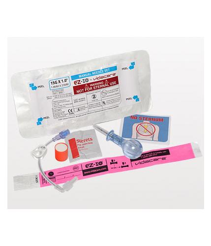 Special Features: Six different FDA cleared sites for easily accessible insertion (Proximal Tibia, Proximal Humerus, and Distal Tibia). Fluids, medications and drugs delivered immediately to central circulation. Low profile EZ-Connect included with every needle. Device is silent and well adapted for confined space. Body armor can remain intact/in place if needed with manual needle. Requires minimal pressure. Dimensions: Packaged: L 6 in. x W 3.25 in Weight: 1.4 oz