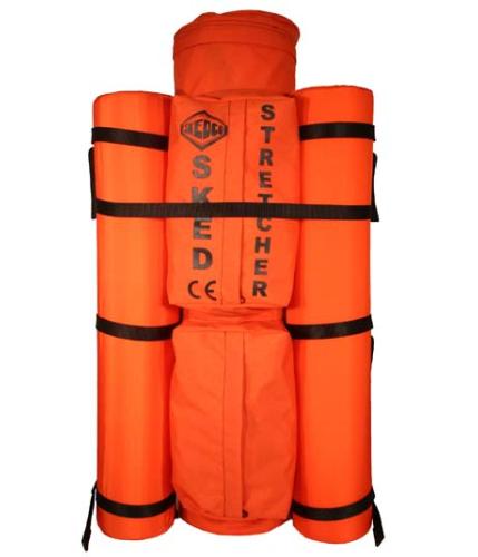 The Complete Rescue System combines the Sked® Basic Rescue System (SK-200), the Oregon Spine Splint II (SK-300) and the Sked® Foam Flotation System (SK-600) in a single money saving package. The entire system combines to make a single back-packable unit. With this system you'll be ready for any emergency rescue situation - on land, in the water, or in the air. Available in International Orange or Camouflage Green. Also available in a military option with the SK-600A Inflatable Flotation System. Everything you need is fitted in a 9" diameter by 36" long stretcher bag (the same bag for SK-200) with the Oregon Spine Splint II stored inside. All the accessories will fit into two outside pockets. The SK-800 is identical to SK-800-OR and SK-800-GR except the foam flotation and 15 lbs ballast bag are replaced with inflatable flotation and empty ballast bag. Excellent choice for Military to keep the system lightweight.
