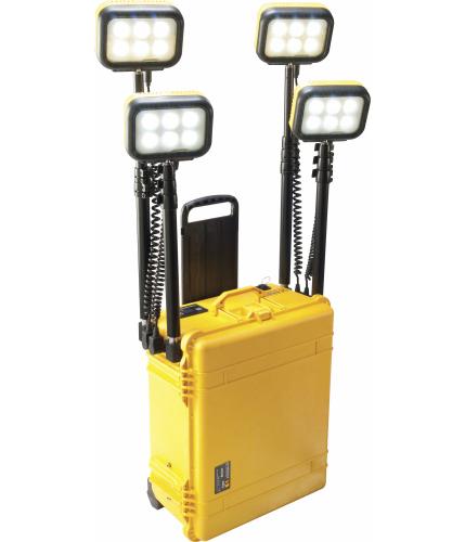 Refined and more powerful the 9470 Remote Area Lighting System (RALS) provides convenient and ecologically responsible alternatives to wasteful generator powered lights. Engineered with the Intelligent Control System which calculates and displays current battery life, allows the user to regulate the intensity of the light and choose the desired run time. Built with versatility in mind, the 9470 RALS features four swiveling telescope masts (each extends to nearly 6 feet) and four 360 degree articulated light arrays. The system's next-generation LEDs combine to radiate up to 12,000 lumens (3,000 per light head). Powered by a set of rechargeable batteries , the system offers up to 7 hours of peak brightness with a variety of extended run times. Built self-contained in a tough-as-nails Pelican case, the 9470 is compact and provides easy ground transport with a pull handle and stainless steel ball-bearing, polyurethane wheels.