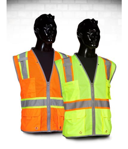 The CSVT-201 is our premium class 2 Surveyor’s mesh vest (ANSI 107-2010). It is a 100% mesh vest featuring NiteGlo™ reflective trim with a breathable mesh contrasting trim and a heavy duty zipper closure. Also, has additional features with 6 pockets, 2 mic tabs, 4 grommet holes, and an iPad pocket. It is available in both orange and yellow with sizing from medium to 5xlarge.