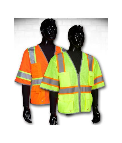 The CSVT-301 is our Class 3 NiteGlo™ Premium Surveyor’s Mesh Vest (ANSI 107-2010). It is a 100% mesh vest featuring NiteGlo™ reflective trim with a breathable mesh contrasting trim and a heavy duty zipper closure. Also, it has additional features with 6 solid pockets, 2 mic tabs, 4 grommet holes, and an iPad pocket. It is available in both orange and yellow with sizes from medium to 5xlarge.