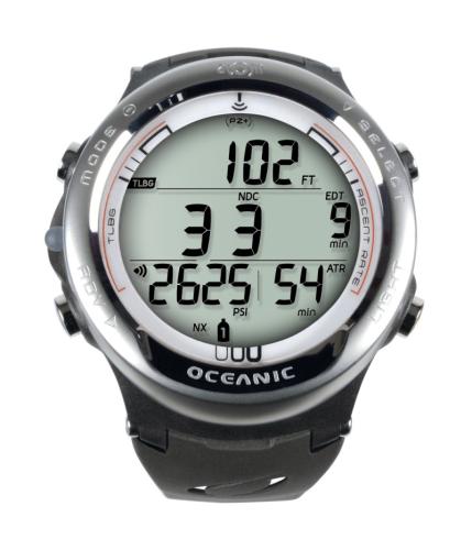 Powered by Oceanic's Exclusive Dual Algorithm® allowing you to choose the decompression algorithm basis that best suits your diving needs without compromising safety. Wireless Air Integrated Technology allows streamlined and accurate monitoring of tank pressure. 4 Operating Modes: WATCH (Alternate Time (with option to display Main and Alternate simultaneously), Chrono, Daily Alarm, Countdown Timer), NORM (Air and Nitrox), GAUGE (with run timer) and FREE (tracks calculations to allow switching between NORM and Free). Switch between 3 independent transmitters, with up to 3 nitrox mixes to 100% O2. Improved user-interface with "Step Back" History - allows forward and backward navigation through menus and settings. Safety stop - auto (with adjustable stop time and depth) + manual (run timer). Gauge Mode with Run Timer. Buddy Pressure Check® allows you to receive and monitor up to two remote transmitters. Single button access to "Last Dive" display (max depth & bottom time). Deep Stop with Countdown Timer. Customizable Audible Alarms with flashing red LED light. Data Retention - allows between dive battery replacement. History Mode includes total number of dives, max depth, total dive hours, and lowest temp. OceanLog® PC Download and Settings Upload Software and USB Cable included with "Complete" option only. Firmware Update Ready. Physical Specs: TICKNESS 5/8", HOUSING 2.1/8", FRONT LENS 1.1/2", SCREEN 1.1/4"