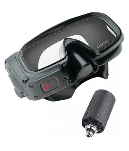 The DATAMASK contains a miniature liquid crystal display (LCD) panel, proprietary Digital Optic System, microprocessor, depth transducer, wireless cylinder pressure receiver, diver replaceable battery, and controlling software. The miniature LCD allows you to keep your eyes focused on the dive while presenting critical dive data including: current depth, elapsed dive time, cylinder pressure, and dive time remaining. The Digital Optic System provides a clear, highly magnified image of the LCD, which is viewable regardless of environmental conditions and may be seen clearly by the vast majority of people, regardless of vision. In-mask Digital Optic System provides a clear, highly magnified image of the LCD, which is viewable regardless of environmental conditions and may be seen clearly by the vast majority of people, regardless of vision. Allows “Hands-Free Diving” for greater convenience, enjoyment and safety during the dive. Wireless Air Integrated Technology with patented Air Time Remaining Algorithm. Audible Alarms with User Acknowledgment. Adjustable backlight intensity may be set on the surface or underwater, allowing the user to fine-tune display so that it is easily readable, yet not distracting. Advanced User Settings & Options. Diver Replaceable Batteries. OceanLog® PC Download and Settings Upload Software and USB Cable included