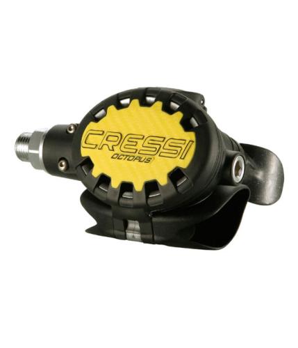 ll the parts of Ellipse, most of which are patented, can be found on this regulator: the fold-out opening of the casing, the special folding diaphragm, the computer designed lever, the tilting movement of the piston, the seal between regulator valve and casing, the possibility of extracting the entire valve system from the body of the 2nd stage. A flow of pilot air is channelled to the mouthpiece by injection, enhancing the performance. The upper part of the body has a flow deviator that acts on the Venturi effect, with dive/pre-dive function. The performance is extremely high, although the calibration is regulated so that the inhalation effort is slightly greater than on the Ellipse, to prevent any self-regulating possibility when it is used as a spare regulator. Octopus Ellipse suits all the Cressi first stages perfectly and all the first stages with an intermediate pressure between 9 and 10 bar. Ellipse 2nd stage. Calibration pressure 9-10 bar. Average inhale effort (*) 8 mbar. Average exhale effort (*) 11 mbar/. Average breathing work (*) 1.3 J/l. Air supply 1300 l/m Weight (without hose) 166 g. (*)values measured in compliance with UNI EN 250 standards.
