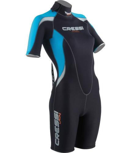 The Cressi all-in-one comes with a new style, with an attractive design, in men's and women's sizes. Hoodless all-in-one with short sleeves and pants, made from 2.5mm double-lined neoprene, perfect for snorkelling, swimming, tropical seas and for all water sports. Single-lined neoprene waterproof seals on arms and legs. Rear zip with under-zip. Adjustable neckline with Velcro closure.