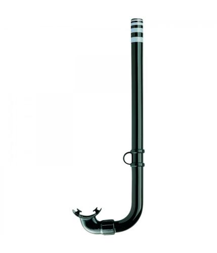 A great classic, used a lot for snorkelling and free diving. The straight tube is made from standard section flexible material. The bottom part is connected to the mouthpiece with a soft curve, perfect for ventilation and for easy expulsion of water. The soft silicon mouthpiece swivels for a natural and comfortable position. A traditional stretch ring attaches it to the mask strap, and it runs right along the tube for excellent adjustment.